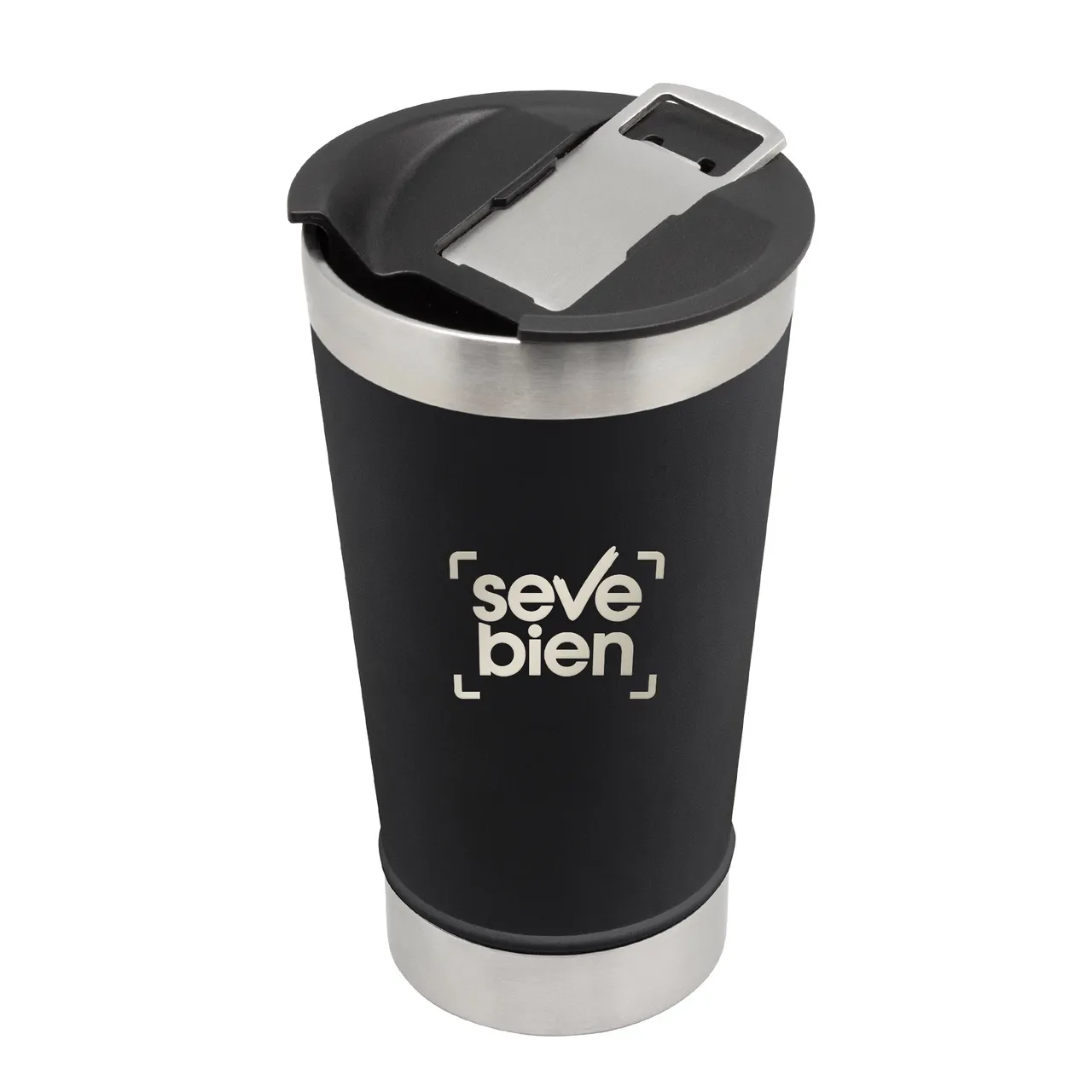 Disfruta de tus bebidas frías o calientes con estilo.Mug doble pared, sellado al vacío. Interior en acero 304 y exterior en acero 201. Tapa plástica con boca ancha a presión con anillo de silicona. incluye abridor de botellas en acero inoxidable 430. Pintura exterior con acabado mate. Mantiene hasta 2 hs la temperatura de las bebidas calientes y 4 hs de las bebidas frías. Medidas: Ø 7,5 x 17 cm.