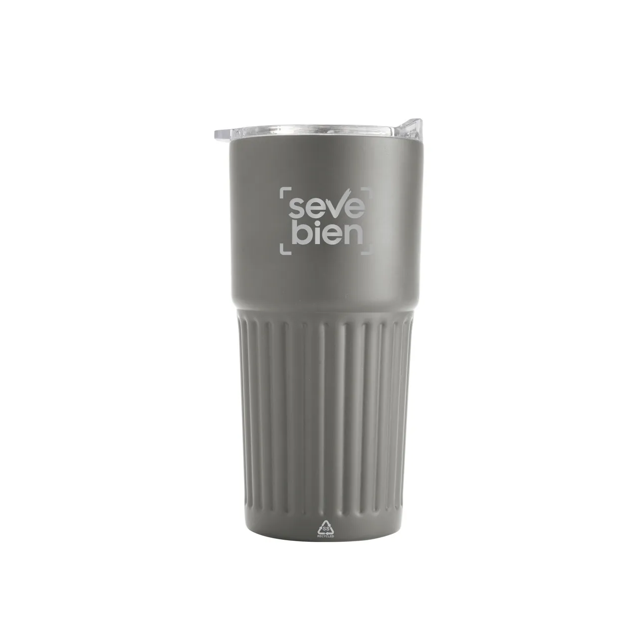 Tu aliado para largas jornadasMug doble pared, sellado al vacío. Mug con aislamiento térmico. Tecnología vacuum. Interior en acero 304 reciclado y exterior en acero 201. Tapa de poliestireno con anillo de silicona. Pintura acabado semi mate. Parte inferior texturada para un mejor agarre. Base antideslizante. Mantiene hasta 12 hs la temperatura de las bebidas calientes y 24 hs de las bebidas frías.Medidas: Ø 8,7 cm x 18 cm.
