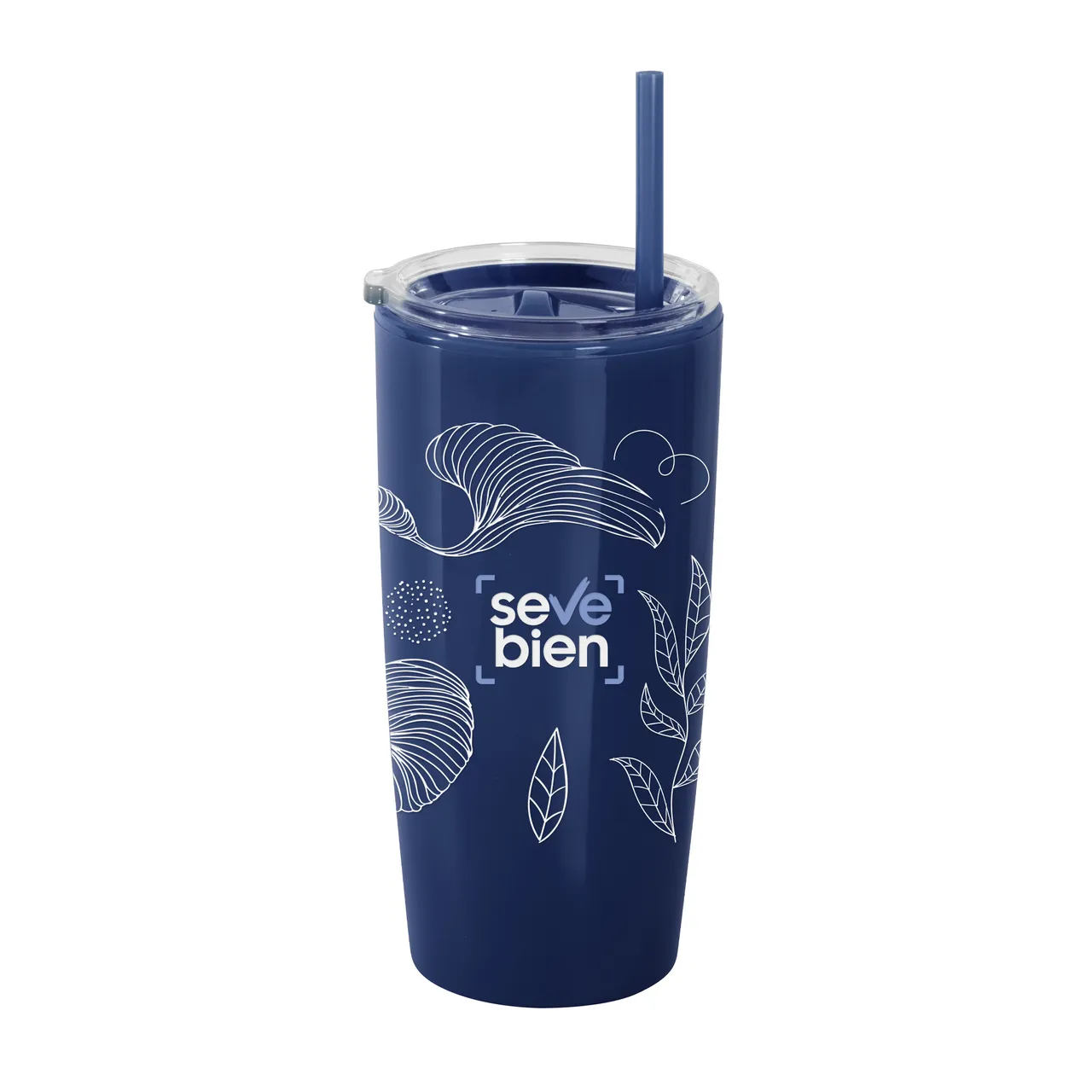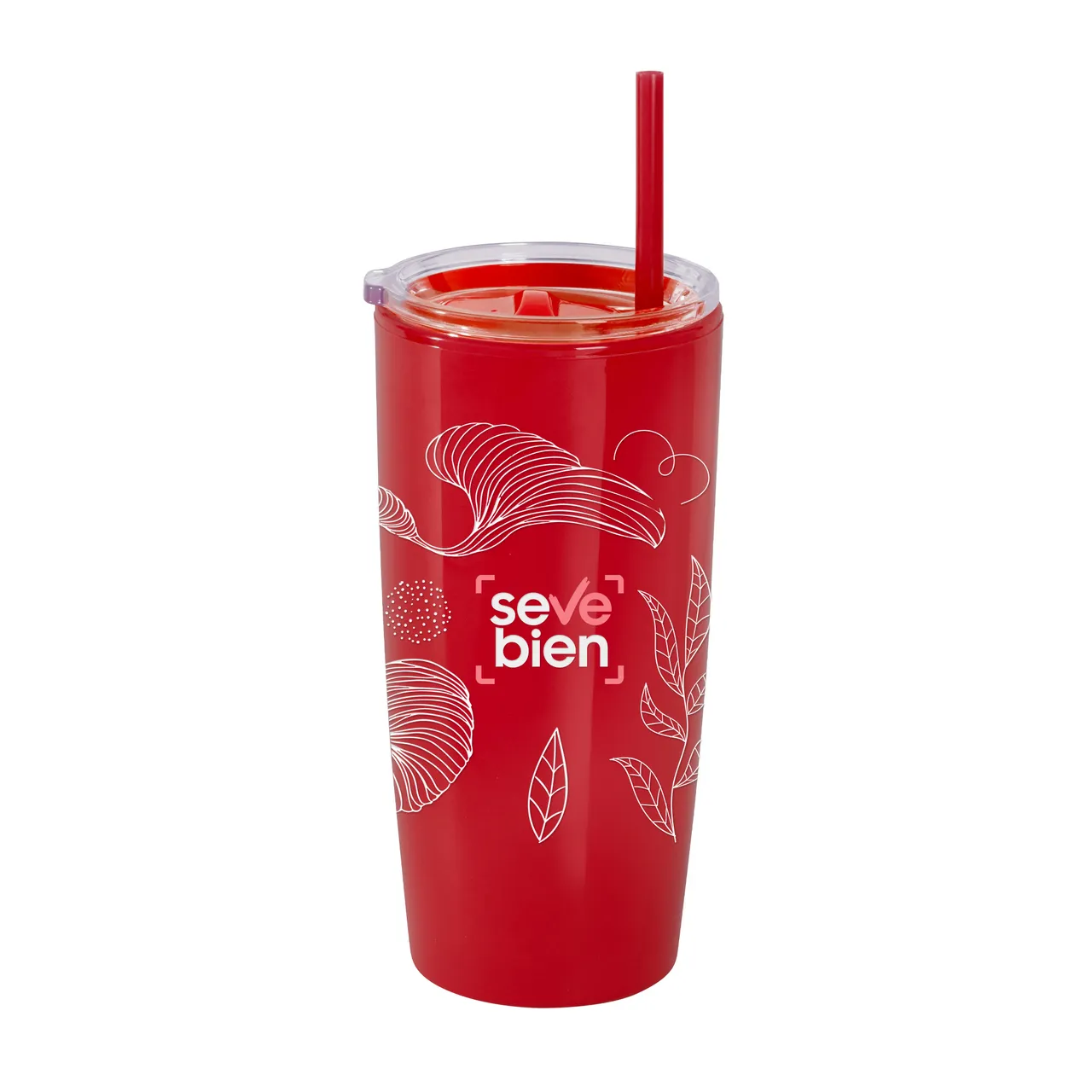 Disfruta de tus bebidas favoritas con comodidad.Mug doble pared con sorbete. Tapa plástica transparente a presión con anillo de silicona. Sorbete de polipropileno y cierre deslizante del mismo color que el cuerpo. Cuerpo con acabado brillante. Medidas: Ø 9 cm x 18,6 cm.