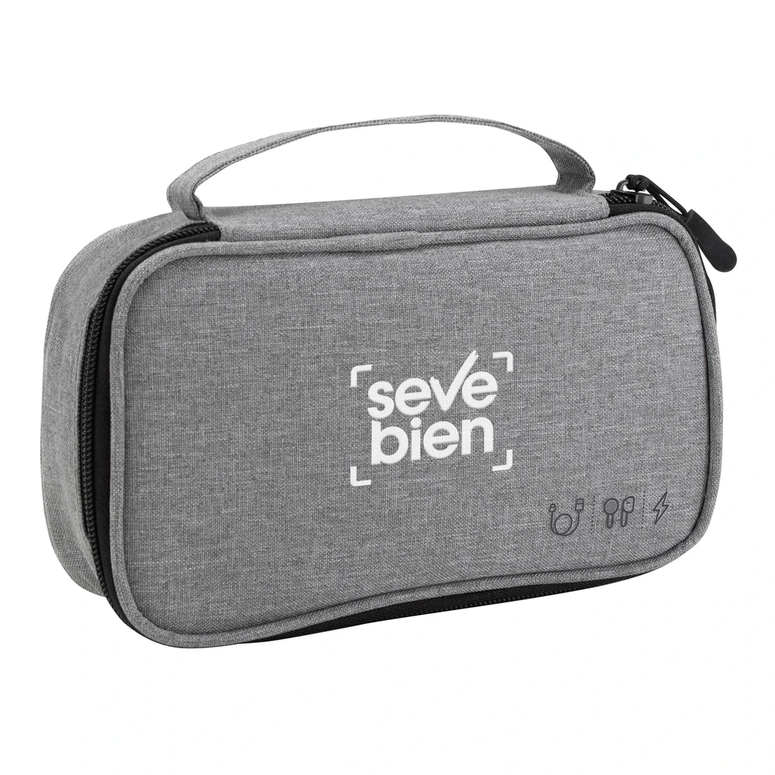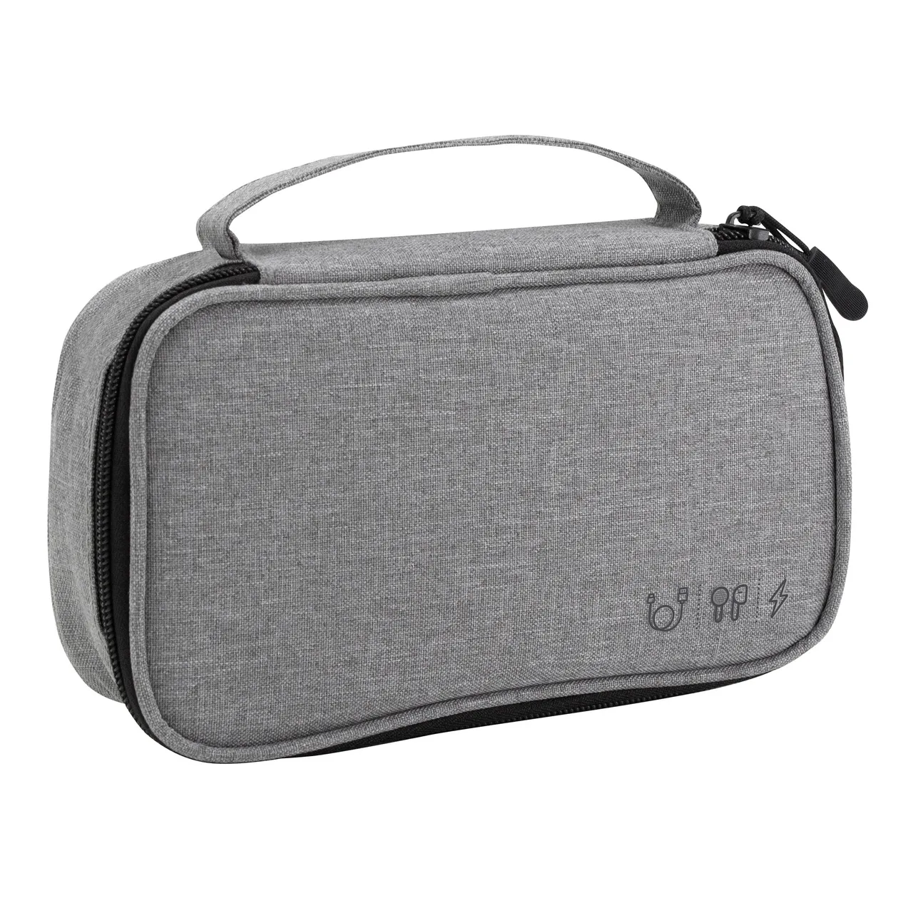 Ordena tu espacio con estiloOrganizador de cables. Estructura acolchada. Asa para transportar. Compartimento principal con cierre con tirador engomado. Interior forrado. En uno de sus lados cuenta con un bolsillo principal y dos pequeños de red, y en el lado contrario tiene un elástico con velcro multipropósito.Medidas: 20 x 12 x 5,3 cm.
