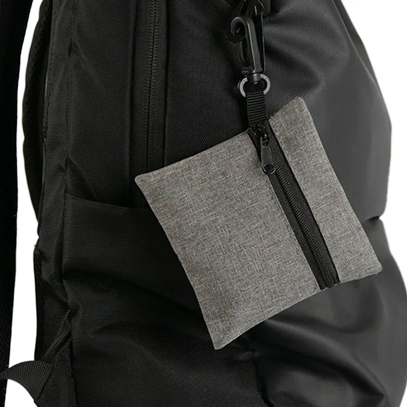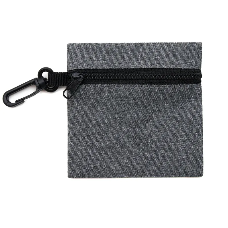 Porta objetos fabricado en poliéster 300D bicolor. Cuenta con cierre y gancho plástico. Es ideal para llevar pequeños accesorios o efectivo.