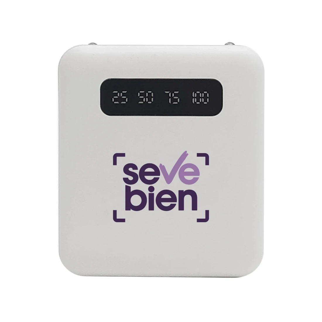 8,8 x 7,9 x 2,6 cm. Capacidad: 5000 mAh. Plástico ABS acabado mate. Power bank multipuerto. Pantalla digital. Doble salida USB. Entradas micro-USB y USB tipo C. Salida de carga rápida 2A. Linterna dual led. 4 cables de carga integrados: USB, Micro USB, Tipo C y IPhone. Puede cargar hasta 5 dispositivos al mismo tiempo. Presentación en caja de regalo.