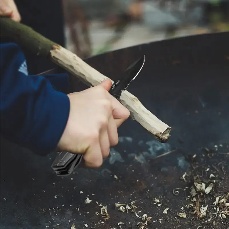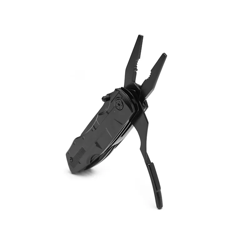 Multi herramienta de acero inoxidable de 8 funciones. Incluye juego de 9 cabezales y funda. Cuenta con pinza, navaja y destornillador con cabezales intercambiables. Medidas: 4,3 x 14,3 x 15,5 cm. Suns Tools.