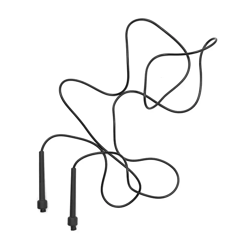 Soga de saltar fabricada en PVC (cuerda) y PP (agarre). Su largo de 2,6 metros se adapta a diferentes estaturas y niveles de entrenamiento.