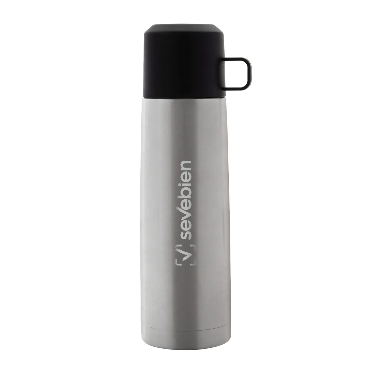 Disfruta de cada sorbo, caliente o frío.Termo con doble pared sellado al vacío. Tecnología vacuum. Acero inoxidable 304 interior / 201 exterior. Tapa y taza plásticas en color negro. Pintura acabado mate. Mantiene hasta 6 hs la temperatura de las bebidas calientes y 12 hs de las bebidas frías.Medidas: Ø 7 x 24 cm