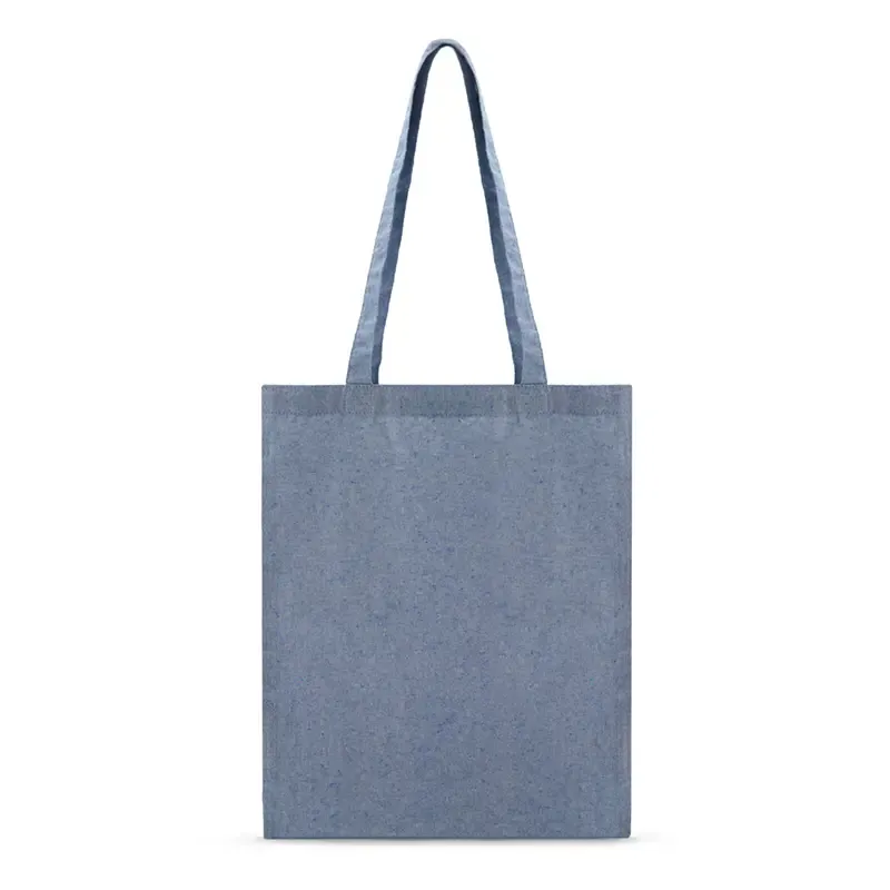 Tote bag fabricada en algodón de 4.5 oz (140gsm) en colores azul melange y gris melange. Ideal para quienes buscan una bolsa de algodón versátil y elegante, perfecta para uso diario, como ir al gimnasio, hacer compras o llevar tus objetos personales con comodidad. Medidas: 40 x 34 cm. ReUseMe