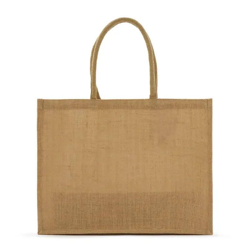 Tote bag fabricada en yute laminado. Ideal para quienes buscan una bolsa resistente y espaciosa, perfecta para llevar compras, libros o cualquier objeto personal de forma cómoda y ecológica. Medidas: 35 x 46 x 19 cm. ReUseMe