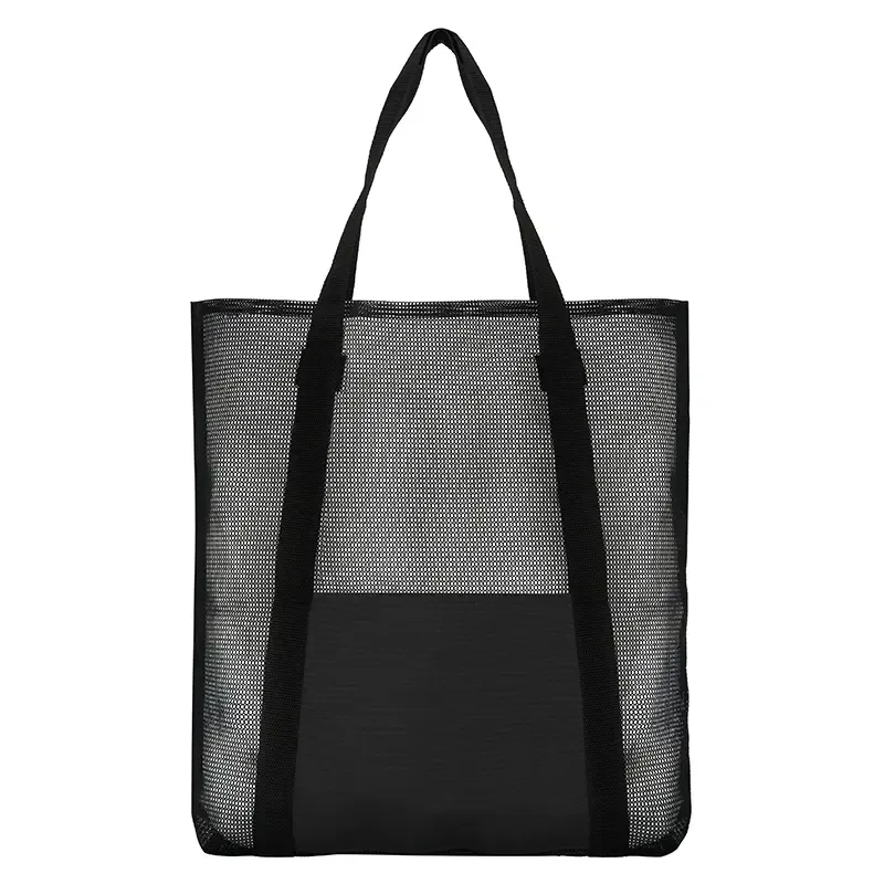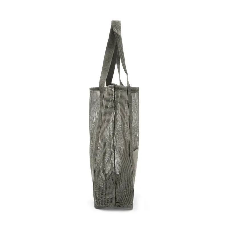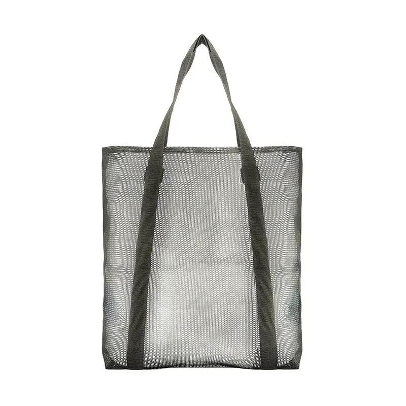 Bolso tote versátil fabricado con malla RPET y poliéster 600D, materiales reciclados y duraderos. Cuenta con un amplio compartimento principal, asas reforzadas para mayor comodidad y resistencia, estructura ligera que facilita el transporte, y diseño de red que combina estilo moderno con practicidad. Es ideal para llevar compras, usar en la playa, transportar artículos del gimnasio o como bolso diario, ofreciendo una opción ecológica, práctica y elegante.