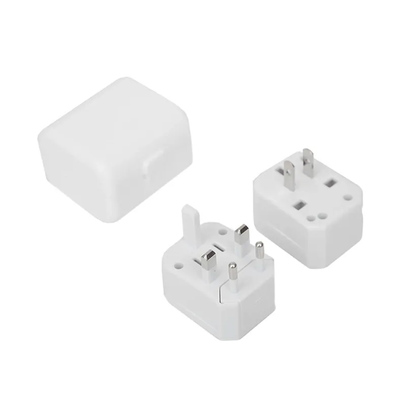 Adaptador de corriente universal, para conexión en cualquier tipo de enchufe al estar de viaje. Medidas: 5,7 x 5 x 4 cm.